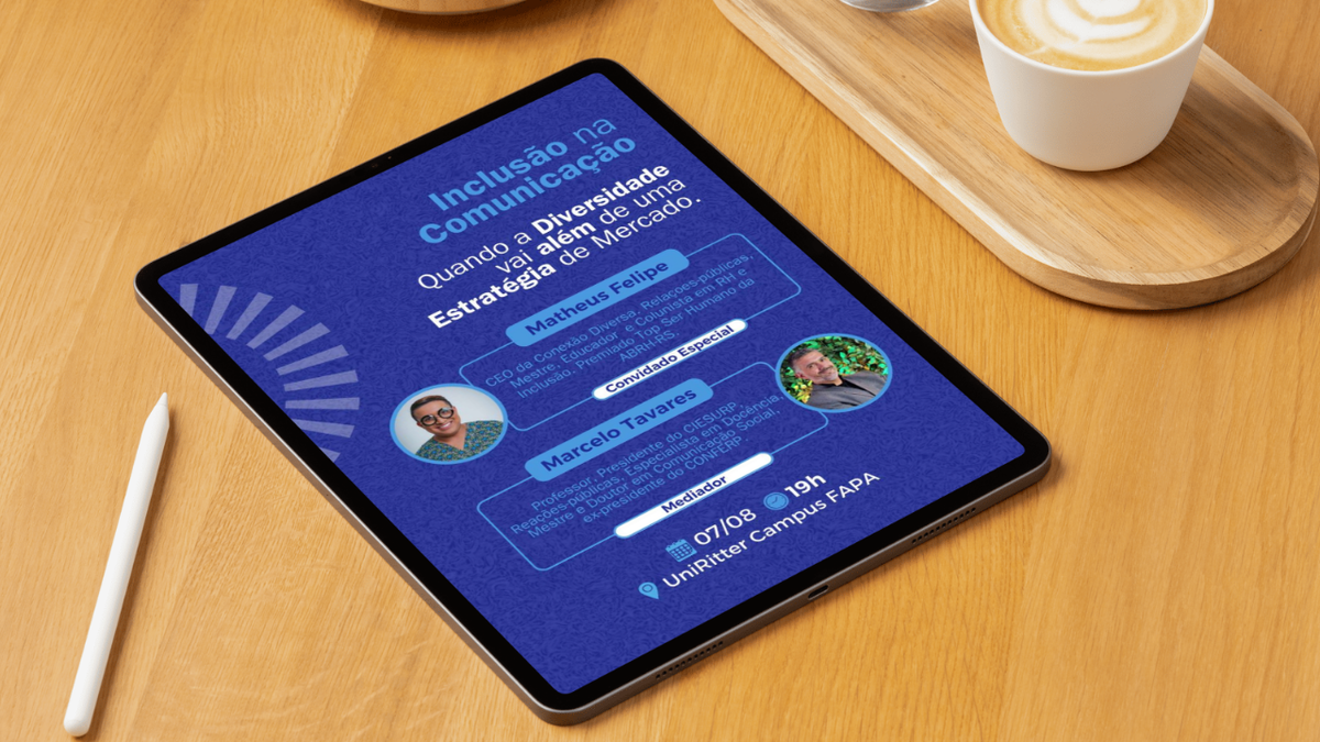 O encontro, promovido pela Diretoria de Capacitação e Inclusão, busca explorar e debater os temas Diversidade e Inclusão, Inteligência Artificial (IA) e Emergência Climática. A iniciativa terá como convidado o relações-públicas Matheus Felipe, que é CEO da consultoria Conexão Diversa, mestre, educador e colunista em 'RH e Inclusão' e 'Top Ser Humano' da Associação Brasileira de Recursos Humanos do Rio Grande do Sul (ABRH-RS). Além da realização do Conselho, a iniciativa tem apoio da UniRitter e Associação Riograndense de Imprensa (ARI).