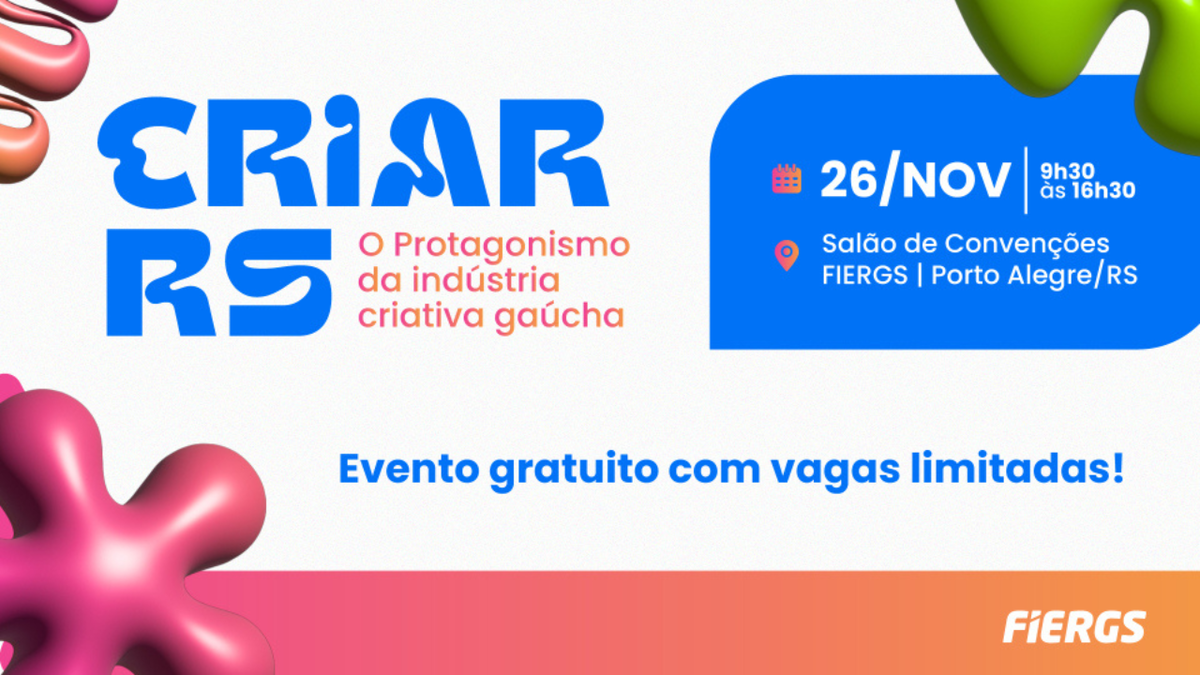 Com o objetivo de ser um espaço de experimentação, integração e protagonismo da indústria criativa gaúcha, a Federação das Indústrias do Estado do Rio Grande do Sul (Fiergs), por meio do Comitê da Indústria Criativa (Comic), realizará a primeira edição do Criar RS. O evento surge para dar visibilidade e fortalecer os talentos, as ideias e os negócios que transformam o Estado.