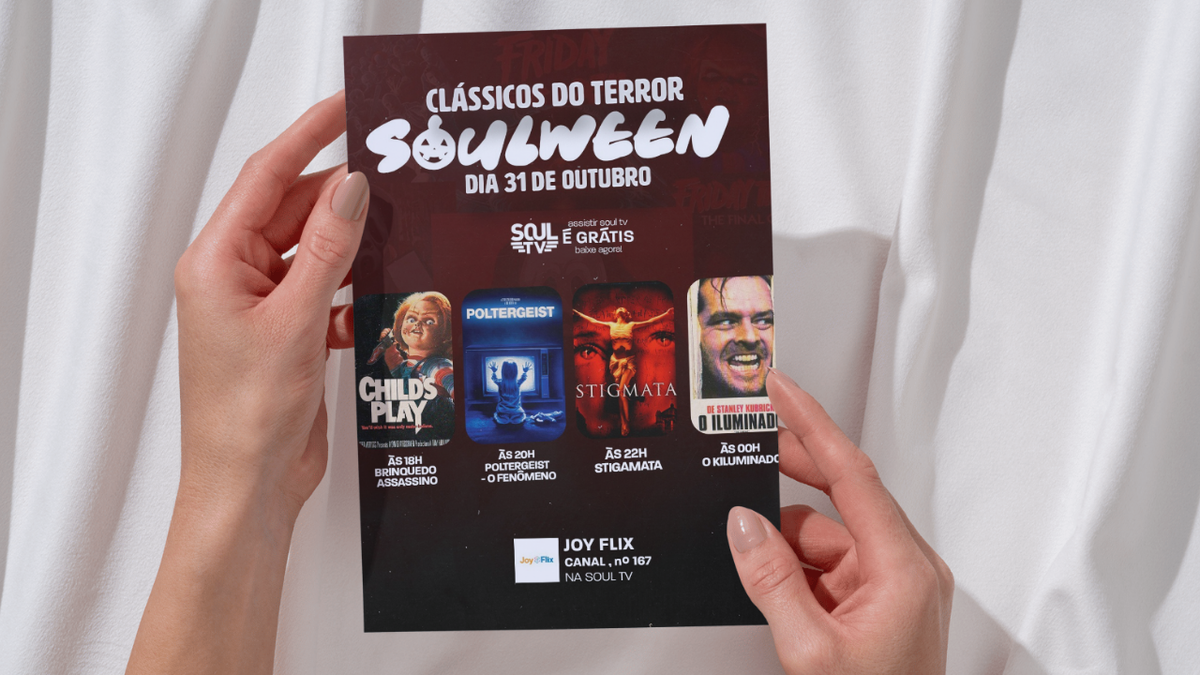 A Soul TV, plataforma de canais em streaming, pretende transformar a semana do Halloween em uma maratona dedicada ao cinema de terror. Entre quarta-feira, 29, e domingo, 2 de novembro, a empresa promoverá uma programação gratuita com clássicos que marcaram o gênero, incluindo títulos como 'Halloween', 'O Exorcista', 'Poltergeist' e 'Brinquedo Assassino', disponíveis em canais como JoyFlix, GLN TV e ISTV.