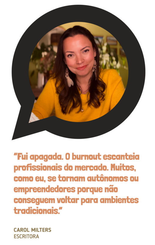 A escritora Carol Milters conhece de perto as camadas do burnout. Após quase 10 anos liderando equipes em uma agência de Publicidade em Porto Alegre, viveu um colapso físico, emocional e cognitivo. "Comecei a esquecer tudo, perdi a capacidade de tomar decisões estratégicas. Sentia que podia morrer dentro do escritório ou cometer um erro irreversível. O que me fez parar não foi o medo da morte, foi o medo de errar."