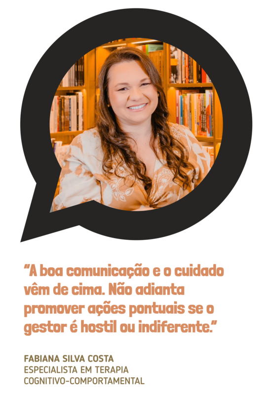 A psicóloga é enfática ao apontar que mudanças reais começam pela gestão. "A boa comunicação e o cuidado vêm de cima. Não adianta promover ações pontuais se o gestor é hostil ou indiferente. Empresas precisam treinar líderes e criar espaços seguros para que as pessoas falem."