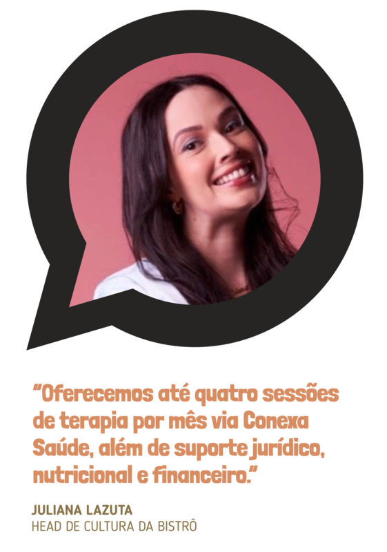 A Bistrô se alinha à nova NR-01, que inclui a saúde mental no Programa de Gerenciamento de Riscos. "Hoje temos baixíssima rotatividade, o que é reflexo direto do que cultivamos: vínculos consistentes, autonomia com responsabilidade e coerência entre discurso e prática", ressalta Juliana.